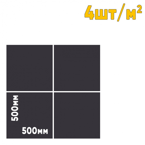Самый большой размер резиновой плитки. Отличный вариант для объектов большой площади. Благодаря тому, что на каждый квадратный метр нужно уложить только одну плитку, такой размер существенно ускоряет монтажные работы.